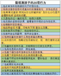 如果孩子在1、8、17條表現(xiàn)突出,代表他可能有很好的語言天賦。如果孩子在6、12、18條表現(xiàn)突出,代表他可能有很好的音樂才能。如果孩子在3、7、15條表現(xiàn)突出,代表他可能在數(shù)學、邏輯方面有天賦。