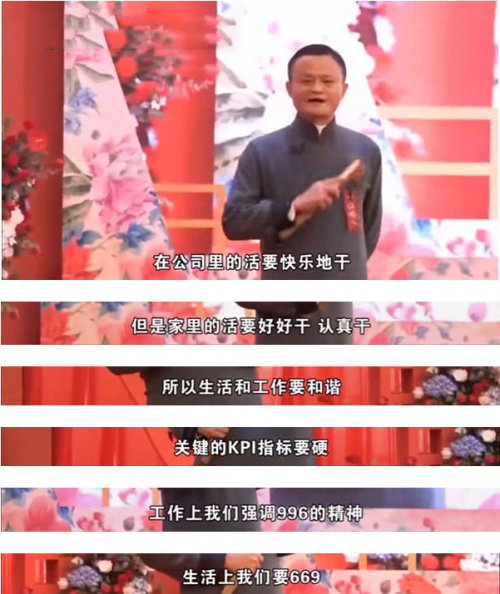 馬云宣稱 :“婚姻的第一個KPI,第一個指標就必須要有結果,要有產品,產品是什么?要生孩子。”,“婚姻的道路有很多,但是有一條,每個人都必須走,都就是去生孩子,陽光燦爛的時候要修理屋頂,年輕力壯的時候多生孩子。”