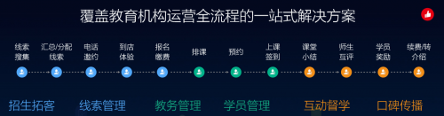 除了招生獲客,有贊教育還覆蓋了教育機(jī)構(gòu)的全流程:從線索收集、線索分配、電話邀約,到報(bào)名繳費(fèi)、排課、預(yù)約、上課簽到,再到課堂小結(jié)、師生互評、學(xué)員獎勵、續(xù)費(fèi),都將被納入有贊教育的精細(xì)化管理體系中。