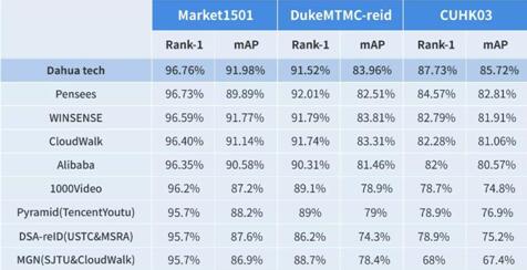 大華行人重識別技術在公開數據集指標