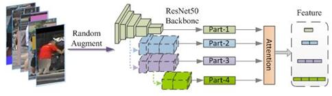 首先,大華創新應用圖像數據增強方法,其主要包括隨機模糊和隨機截補等策略,能夠有效地模擬各種環境下的人體遮擋、模糊和不完整等復雜情況。隨機截補策略有助于挖掘分塊部件網絡的特征提取潛力,提升網絡的特征匹配性能。