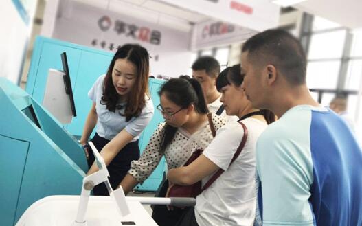RFID智慧圖書館館內設備及24小時智慧微型圖書館吸引著大量觀展嘉賓,展區現場人頭攢動。
