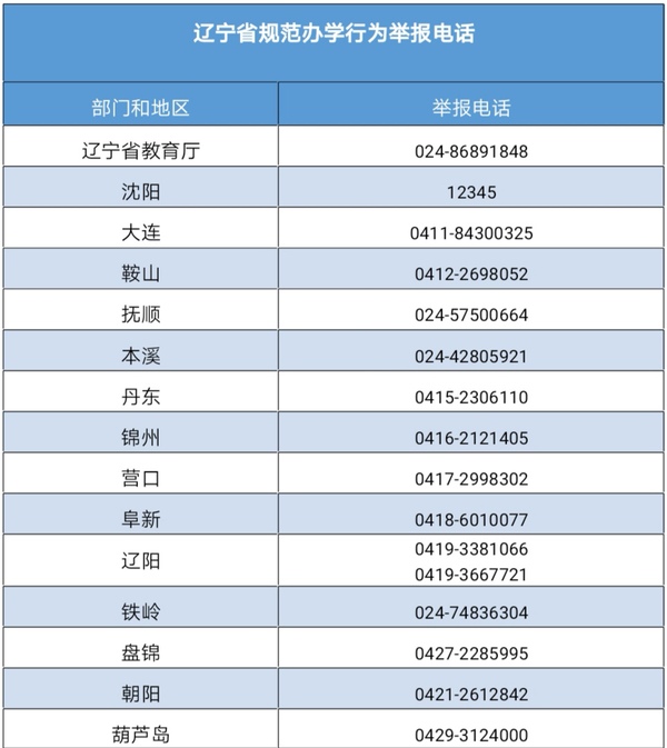 遼寧公布各地規(guī)范辦學行為舉報電話