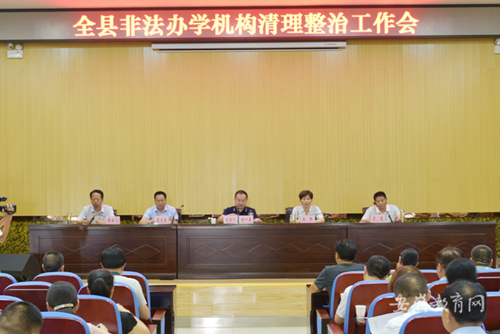 近日,霍邱縣非法辦學機構清理整治工作部署會在縣教育培訓中心舉行,縣委常委、宣傳部長儲葉來主持會議并講話,副縣長王暉部署清理整治工作并提出要求。