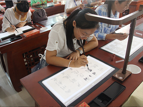 硬件方面,華文眾合歷時四年成功研制出交互式數(shù)字臨摹臺,解決了書法臨摹方面的難題,在臨摹臺上鋪上宣紙就可以用毛筆、墨汁高清臨摹任意字帖和歷代書法家真跡,既降低了書法學(xué)習(xí)門檻,又可以幫助學(xué)生建立書法學(xué)習(xí)的自信心和自豪感。