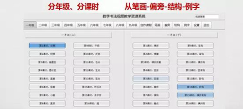 華文眾合智慧書法教室既注重軟硬件技術(shù)的先進性,又注重教學(xué)的先進性,基于教育部《中小學(xué)書法教育指導(dǎo)綱要》(教基二[2013]1 號)文件開發(fā)了智能課程。該課程從一到九年級分課時安排,從筆畫—偏旁—結(jié)構(gòu)—例字循序漸進學(xué)習(xí)。