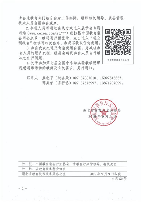 湖北省教育技術(shù)裝備處關(guān)于參加第77屆中國教育裝備展示會(huì)的函