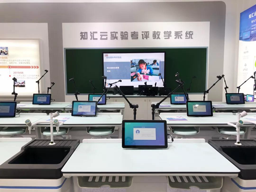 通過場景化、沉浸式的展示,知匯云在展會現場讓嘉賓實際體驗了一把“新中考”理化生實驗操作考,通過現場“考試”來感受產品的優勢。