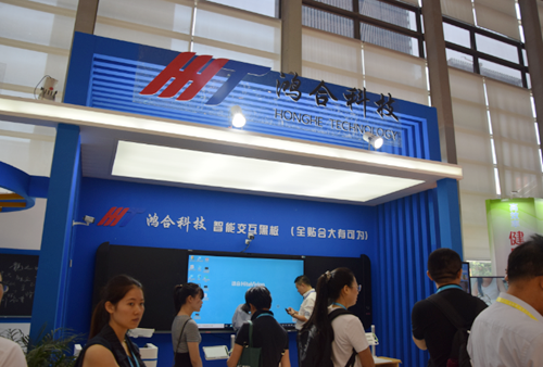 本屆博覽會,鴻合科技攜智能交互黑板、智能交互平板、雙屏課堂等產品亮相現場。