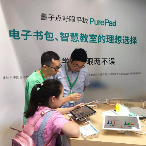 展會上,納晶科技量子點健康顯示技術和產品激發了眾多參展觀眾的興趣,也得到了眾多教育部門及集成商的肯定。當前,納晶量子點舒眼平板PurePad已被納入中國生態校園建設系列叢書之《視覺健康與光環境》保障視覺健康典型產品示例,納晶量子點護眼相關解決方案被納入中國關工委首批《公益護眼采購目錄》。