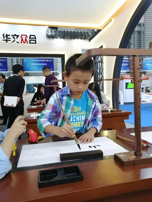 9月28日,2019中國國際教育裝備(上海)博覽會在上海新國際博覽中心盛大舉行。華文眾合攜第五代智慧書法教室參展,吸引國內外觀眾駐足體驗。