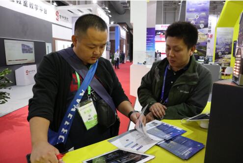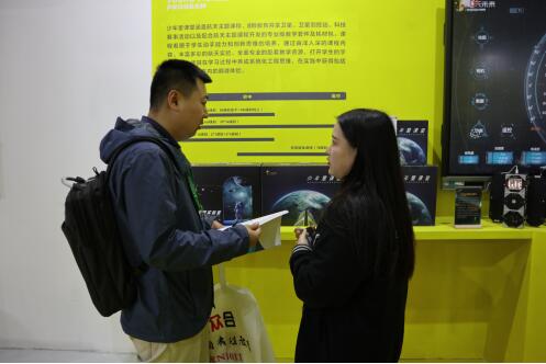 ↑客戶向九天未來工作人員咨詢“北斗杯”全國青少年科技創新大賽的相關案例。