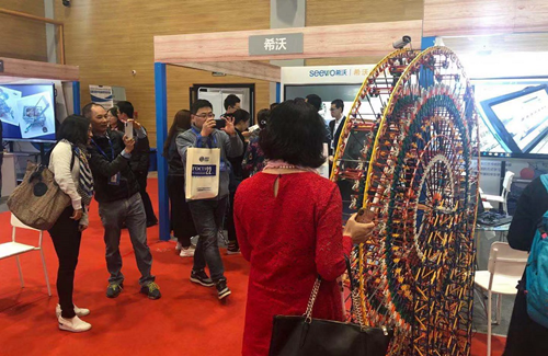 中教啟星創(chuàng)客教育項(xiàng)目在現(xiàn)場(chǎng)用KNEX搭建的摩天輪吸引了許多觀眾的關(guān)注,大家紛紛競(jìng)相拍照留念