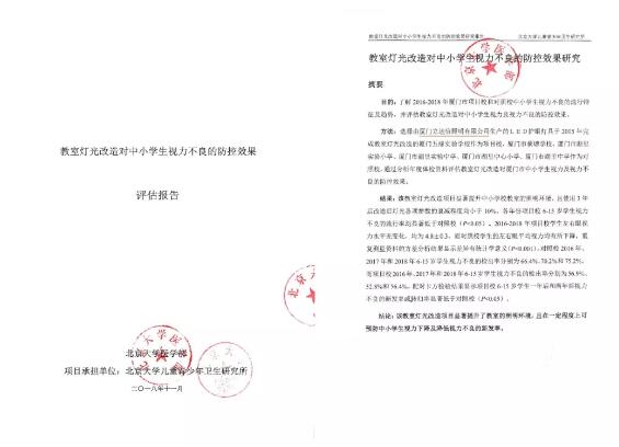 北京大學醫學部、北京大學兒童青少年衛生研究所歷時3年研究,出具的《教室燈光改造對中小學生視力不良的防控效果》評估報告顯示:立達信健康光環境改造項目顯著提升了教室的照明環境,在一定程度上可預防中小學生視力下降及降低視力不良的新發率。立達信成為目前唯一取得燈具護眼權威認證的企業。