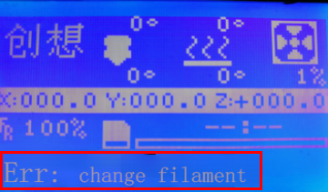 解決方法:當(dāng)屏幕出現(xiàn)這種錯(cuò)誤提示時(shí),一般是耗材在斷料檢測(cè)部位斷裂了,只需重新裝載耗材即可。