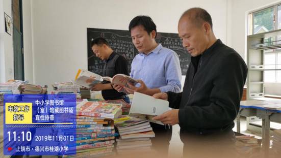 德興市儀器電教站到學校指導“中小學圖書館(室)館藏圖書適宜性”評價工作