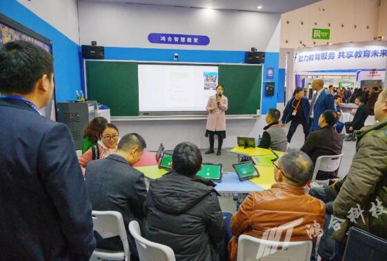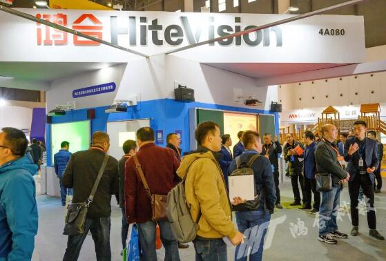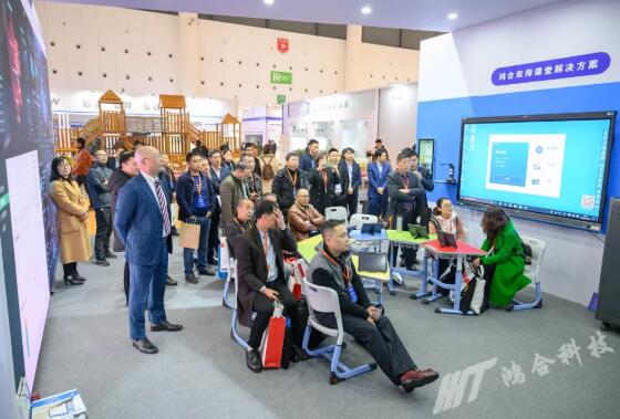 在本屆博覽會上,鴻合科技憑借長期服務教育行業信息化建設的深厚經驗,在位于4A080展區以225平的展位面積,展出了包括鴻合智慧教室、雙師課堂、雙屏教學,校園數字媒體發布系統等面向不同應用場景的完整生態教育解決方案,以及鴻合智能交互黑板、智能交互平板、智能交互白板一體機、幼教交互白板、激光投影機、鴻合電子書包等一系列先進的智能交互硬件設備。除硬件設備及解決方案外,鴻合π交互教學軟件、鴻合愛學班班教師應用軟件也吸引了現場眾多參觀者駐足圍觀。