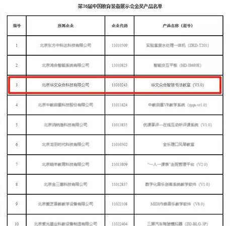 華文眾合智慧書法教室榮獲第76屆中國教育裝備展示會(huì)金獎(jiǎng)產(chǎn)品