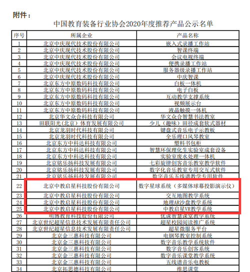 中教啟星產(chǎn)品再次榮獲中國(guó)教育裝備行業(yè)協(xié)會(huì)2020年度推薦產(chǎn)品