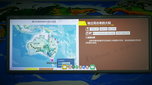 中教啟星交互地圖教學(xué)系統(tǒng)是專為現(xiàn)代信息化地理教室而設(shè)計(jì)的數(shù)字化現(xiàn)代教育裝備產(chǎn)品。本系統(tǒng)為凸顯地圖在地理課堂教學(xué)中突出地位和功能而潛心設(shè)計(jì)制作,它將數(shù)字專題地圖與教學(xué)課件有機(jī)結(jié)合,通過超寬屏投影技術(shù)、集成觸控技術(shù)、紅外技術(shù)和多屏聯(lián)動(dòng)技術(shù)等多種技術(shù),突破了傳統(tǒng)教室在區(qū)域地理呈現(xiàn)方式上的局限性和不足。