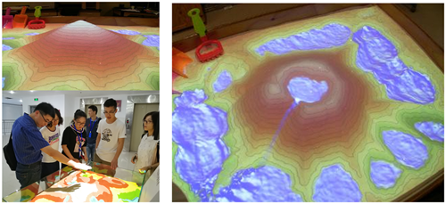 地理AR沙盤是一款適用于初高中地理教學(xué)的數(shù)字化投影沙盤。采用AR增強(qiáng)現(xiàn)實(shí)、傳感等技術(shù),即時(shí)識(shí)別互動(dòng)沙盤形態(tài),依據(jù)沙盤變化,將不同的地勢(shì)地貌形態(tài)通過虛擬投影真實(shí)展示。