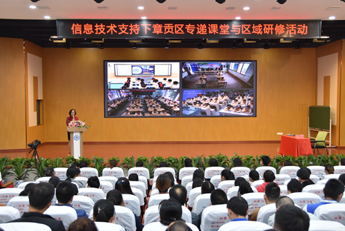 近年來,章貢區全面貫徹落實教育信息化2.0計劃,加快教育信息化步伐,深入優化“校校通、班班通、人人通”工程,通過專遞課堂、區域研修等互聯網+應用模式,將信息技術融入城鄉學校教學、管理模式創新全過程,實現了城鄉學生課堂共享、城鄉教師研修同步、城鄉學校集群發展,全面推進城鄉教育均衡發展再升級,讓城鄉學校在一體化發展中一同精彩。