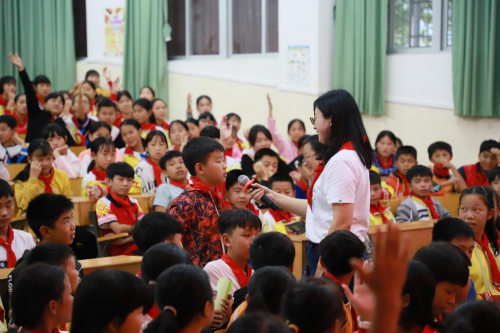 授課后,廣東省清遠市連南縣民族小學的學生圍著老師一起討論