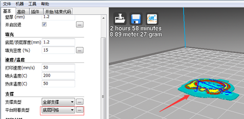 3.在切片軟件的平臺(tái)依從性類型上選擇基礎(chǔ)網(wǎng)格,然后在打印模型時(shí)會(huì)有一個(gè)基礎(chǔ),這有助于模型更好地依附于平臺(tái),并且不會(huì)影響模型。