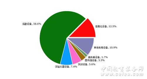 12月份教育裝備行業(yè)招標(biāo)采購信息分類占比情況如圖1所示:后勤設(shè)備招標(biāo)采購信息共計2451條,占56.33%;信息化設(shè)備招標(biāo)采購信息共計627條,占14.41%;實(shí)訓(xùn)設(shè)備招標(biāo)采購信息共計313條,占7.19%;實(shí)驗(yàn)儀器設(shè)備招標(biāo)采購信息共計262條,占6.02%;圖書館設(shè)備招標(biāo)采購信息共計115條,占2.64%;音體美設(shè)備招標(biāo)采購信息共計43條,占0.99%;其他專用設(shè)備招標(biāo)采購信息共計540條,占12.41%。