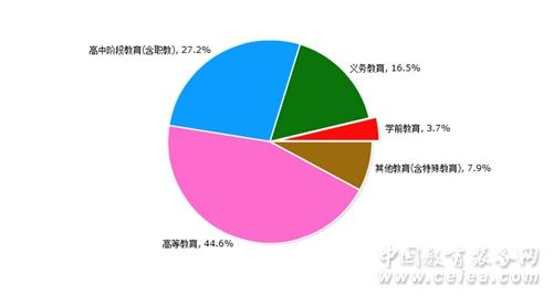12月中標(biāo)信息所屬領(lǐng)域統(tǒng)計圖,如圖10所示:學(xué)前教育占比為3.7%;義務(wù)教育占比為16.5%;高中階段教育(含職教)占比為27.2%;高等教育占比為44.6%;其他教育(含特殊教育)占比為7.9%。