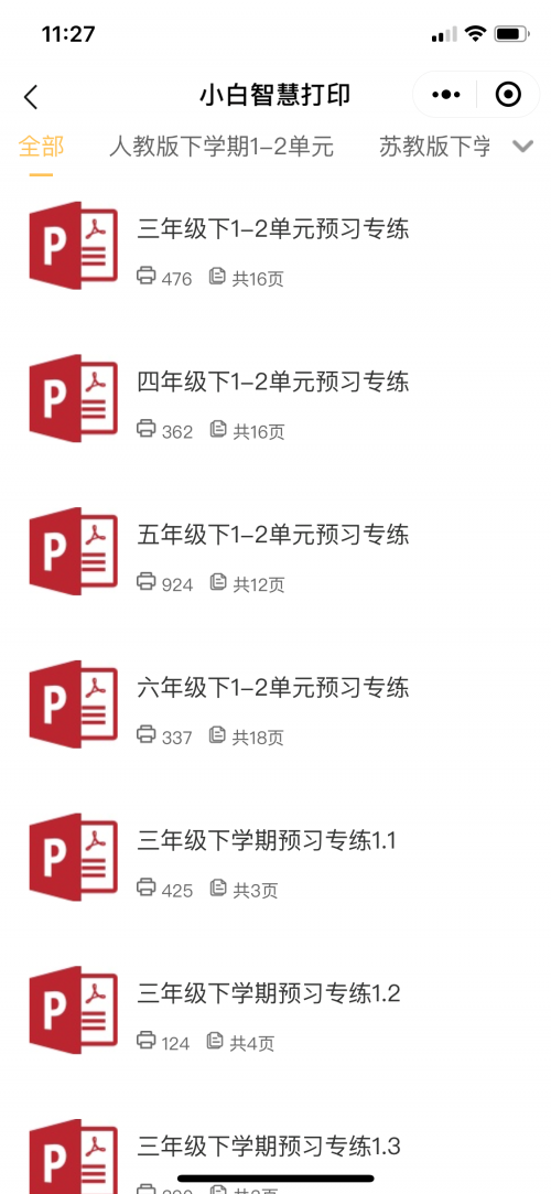同時操作也非常簡單,只要打開小白智慧打印微信小程序,即可在首頁找到專為此次特出情況推出的熱門打印資源,選擇相應版本相應年級教材,即可輕松獲得