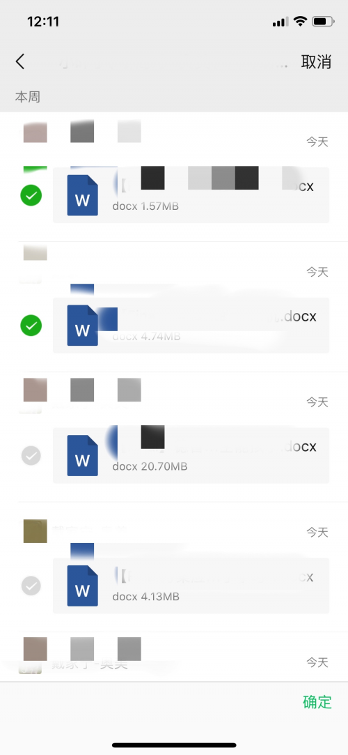 (3)選擇需要打印文檔所在的聊天對話,并勾選需要打印的文檔