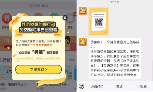 為讓更多孩子在家期間能學起來、動起來,都有機會獲得優質教育資源,多樣的益智內容。2月3日起,小白智慧打印開放領取一個月免費會員,用戶可在家免費使用會員內容,隨時打印海量學習資料,以及互動內容,輕松幫助家長陪伴孩子學習成長。家長再也不用因為孩子停學在家不知道怎么互動而煩惱了。停課不停學,在家也充實!