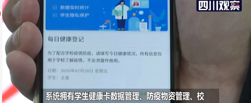 四川長虹教育科技有限公司技術人員黃安堃告訴記者,按照省教育廳要求,疫情防控期間,學校復課以后要對學生進行晨檢、午檢,并每日上報,數據量很大,如何準確填寫并及時上報?這款系統就解決了這一問題。紅外測溫儀測試體溫,掃描二維碼確認學生身份信息,然后這些數據可以實時上傳到手機端,可以說是1秒1個精準錄入,比人工填寫節約了80%的時間。