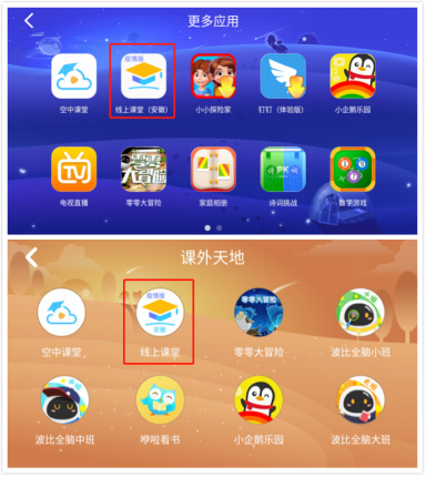 即日起,除了用手機(jī)、電腦、電視等途徑收看線上教育課程外,家長孩子們也可以選擇用阿爾法蛋收看啦。只需要在大蛋或大蛋2.0中找到“線上課堂”應(yīng)用,就可以根據(jù)自身需要選擇對應(yīng)的課程學(xué)習(xí)。大蛋2.0需要在小學(xué)賬號下,在“更多應(yīng)用”中打開“線上課堂”,大蛋則可以在課外天地中找到。不卡頓,不掉線,全省小學(xué)課程同步學(xué)!