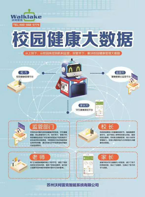 目前,沃柯雷克晨檢機器人已在國內大面積普及應用,不僅解決了幼兒園晨檢的痛點、改善了目前學前機構晨檢存在的不規范形式,避免了流行性疾病二次傳染的風險,而且晨檢、簽到數據實時傳送至云端記錄、存儲和分析,并通過微信轉發給對應的家長、老師,實現了對兒童安全健康成長的實時關注。政府通過大數據平臺實時掌握轄區下所有幼兒園寶寶的身體健康狀況,實時做出預警。