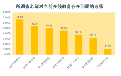 1對當前在線教育存在的問題,所調查老師們反映最多的問題是互動不夠充分,說明了線上互動的重要性。