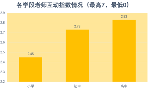 從學段進行分析,小初高三個階段的互動指數依次是2.45、2.73、2.83,高中階段的互動指數最高,即互動形式最豐富。