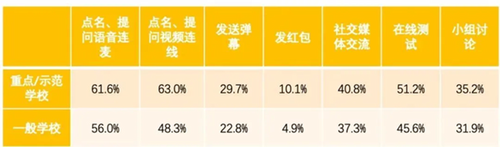 3學校層面上,重點/示范學校老師的互動形式顯著高于一般學校老師的使用。