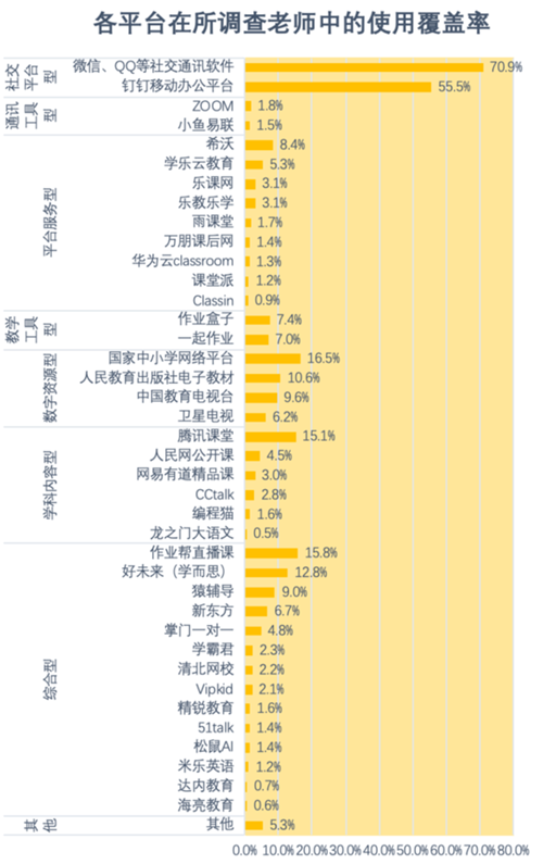 教師在疫情階段用于在線教學的平臺可劃分為七類: