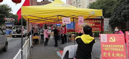 學生返校時需要掃碼測體溫,根據學校引導的路線有序入校。 廣西師范大學供圖