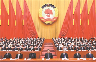 大會首先審議通過了政協第十三屆全國委員會第三次會議議程。