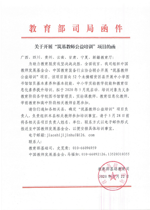 中國教師發(fā)展基金會 中國教育裝備行業(yè)協(xié)會關(guān)于開展“筑基教師公益培訓(xùn)”項(xiàng)目的通知