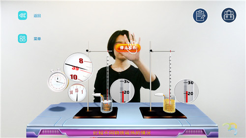 按照國家課程標準實驗要求,將中學物理難懂的抽象的復雜的實驗運用3D建模及AR技術營造虛實合一的實驗場景。老師無需佩戴任何體感設備即可進行手勢操作,通過手勢可以實現抓取、移動、添加、減少、旋轉、拆除、組合等動作,從而進行探究實驗操作。