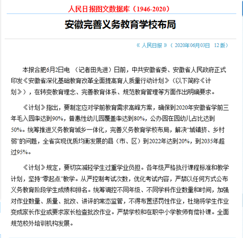 日前,中共安徽省委、安徽省人民政府正式印發(fā)《安徽省深化基礎(chǔ)教育改革全面提高育人質(zhì)量行動計劃》(以下簡稱《計劃》),在轉(zhuǎn)變教育理念、完善教育體系、規(guī)范教育管理等方面作出明確要求。