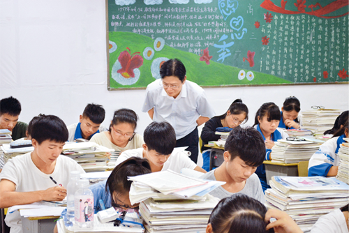 就任臺江民中校長后,陳立群針對學生學習興趣不高、紀律散漫等現象,提出確立高遠志向、激發高昂志氣、培養高雅志趣的“三志”教育,適時開展“安靜學習環境月”、“自主學習活動月”、“自我挑戰月”等活動,逐漸使學校學生面貌煥然一新。圖為陳立群在晚自修時間輔導學生學習。 (浙江日報記者 石天星/攝)
