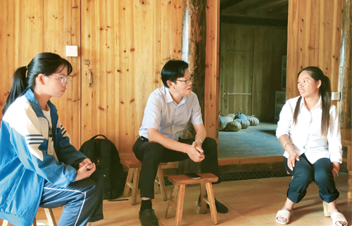 每逢周末或節假日,陳立群都會翻山越嶺、走寨訪戶,家訪貧困學生家庭,鼓勵家長讓孩子完成學業。圖為陳立群在臺江縣南冬村建檔立卡貧困學生王寶芝家家訪。(新華社記者 李驚亞/攝)