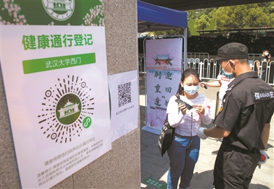 武漢理工大學為了保證學生有序返校,研發設計了一套“校園E碼通行”系統,返校學生掃描綠碼入校,進宿舍也需要進行“校園E碼通行”的掃描登記。