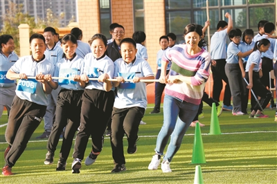 濟南高新區東城逸家中學師生共同參加趣味運動會。 (學校供圖)