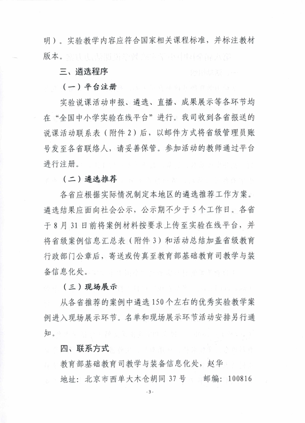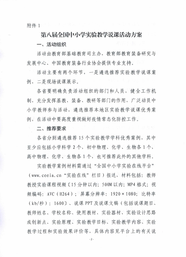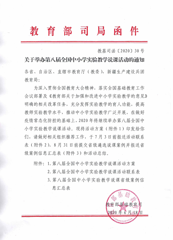 教育部基礎教育司關于舉辦第八屆全國中小學實驗教學說課活動的通知